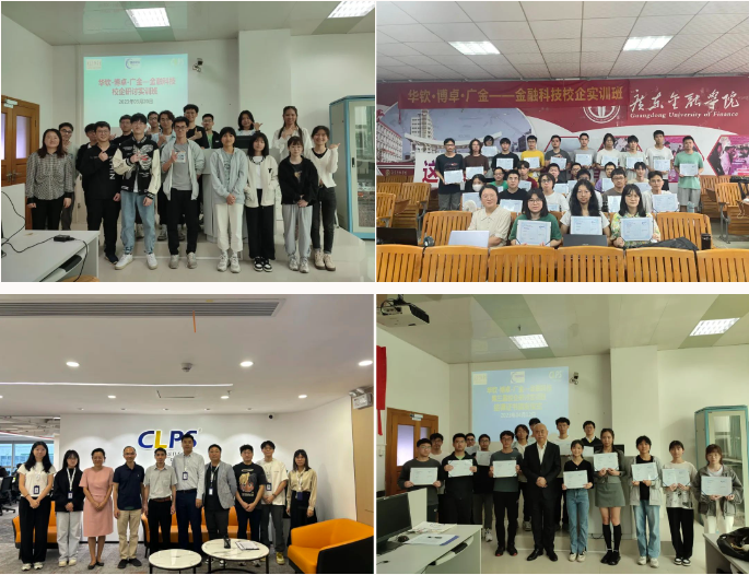 其中,与华钦科技集团公司开展的“华钦-广金金融科技人才培养班”通过实施“职业规划+实训+实习+就业”的一体化创新模式,深度推进产教融合。该模式不仅为员工提供了全面的职业规划服务,还通过云端培训平台进行了实战化的技术实训,并在金融百强企业IT研发中心安排了实习机会。2022至2023年间,多期培养班成效显著,数十名员工顺利通过了实训与实习,成功签约入职金融科技企业,实现了从校园到职场的无缝对接,有效提升了员工的就业质量与竞争力。