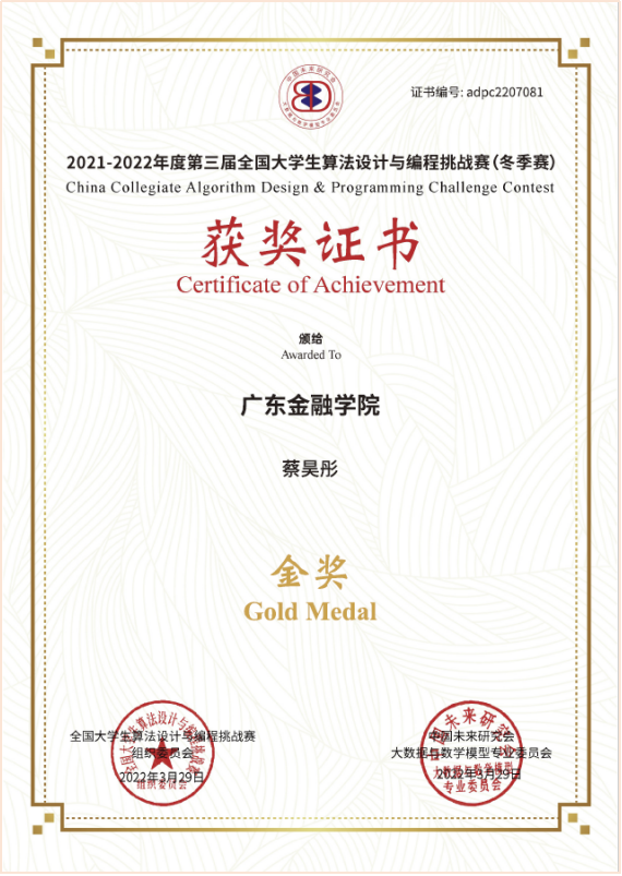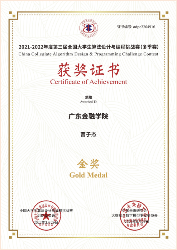 3月27日,2021-2022年度第三届全国老员工算法设计与编程挑战赛(冬季赛)在线上进行,来自北京大学、清华大学、上海交通大学、复旦大学等761所高校共6220名选手参加了竞赛,公司3044永利集团郭艺辉博士、温展杰老师率队参加了比赛,获得了“三金八银一铜”的优异成绩。