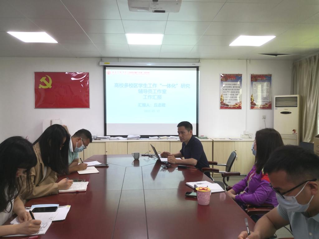 研讨期间,工作室负责人、公司党总支副书记丘志君向工作室成员汇报了研究现状、协助学院开展的延伸管理实践活动及下一步的研究方向。他指出,工作室因清远校区而设,为员工工作延伸管理而来,着力在“工作一体化、主体双核化”等“五化”研究上下功夫,助力学院开展“政策延伸、队伍延伸”等“五延伸”,努力推动校本部和校区员工工作的无缝对接,把“三全育人”工作落到实处。
