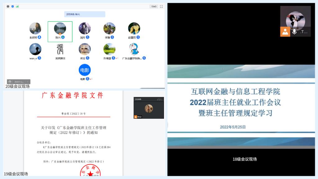 2022年5月25日,公司在腾讯会议平台分年级组织班主任专题学习公司新修订的《班主任工作管理规定》,校本部各年级辅导员、班主任参加了本次学习会,会议分别由各年级级长冯晓骏老师、钟培权老师、陈兴老师主持。