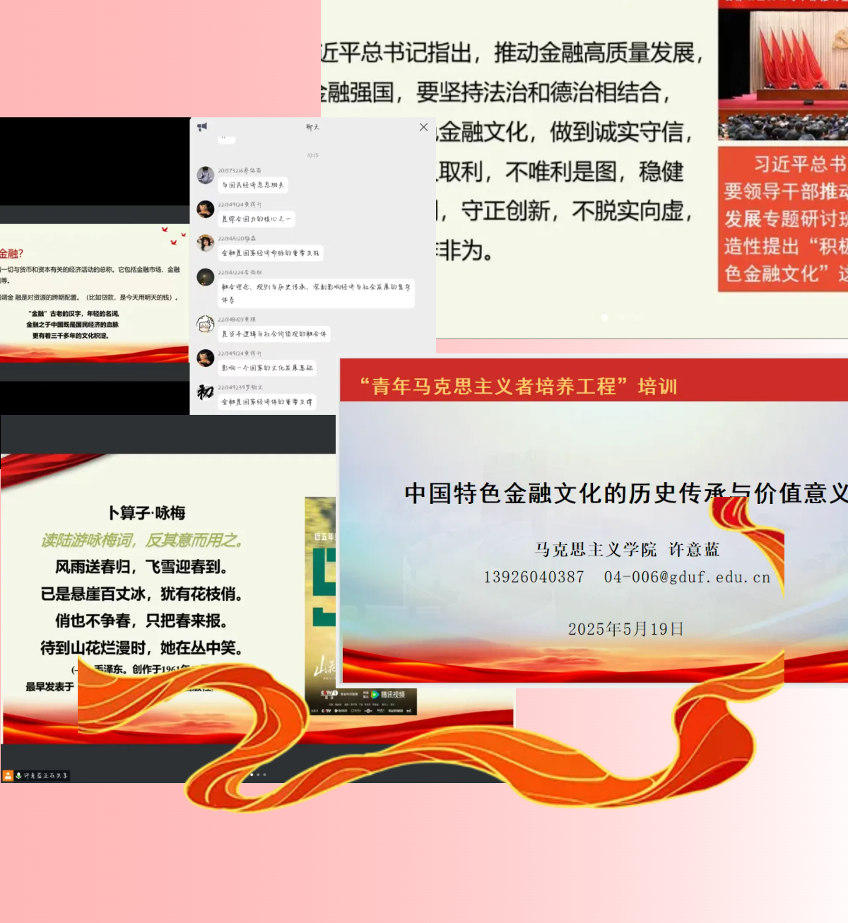 在“青马工程”的第二站,青马导师许意蓝聚焦《中国特色金融文化的历史传承与价值意义》这一主题,以毛主席诗词中红梅的精神内涵为巧妙切入点,围绕“五要五不要”的核心要义,由浅入深地引导学员们深入学习与领会中国特色金融文化的内涵,当代价值和意义。许老师寄语同学们,作为金融特色高校的学子,更应义无反顾地担当起积极传承和弘扬中国特色金融文化的使命,让其在金融实践中发挥更大的作用和价值。讲座过程中,学员们积极踊跃地与导师互动交流,纷纷表达个人对特色金融文化的见解与思考。