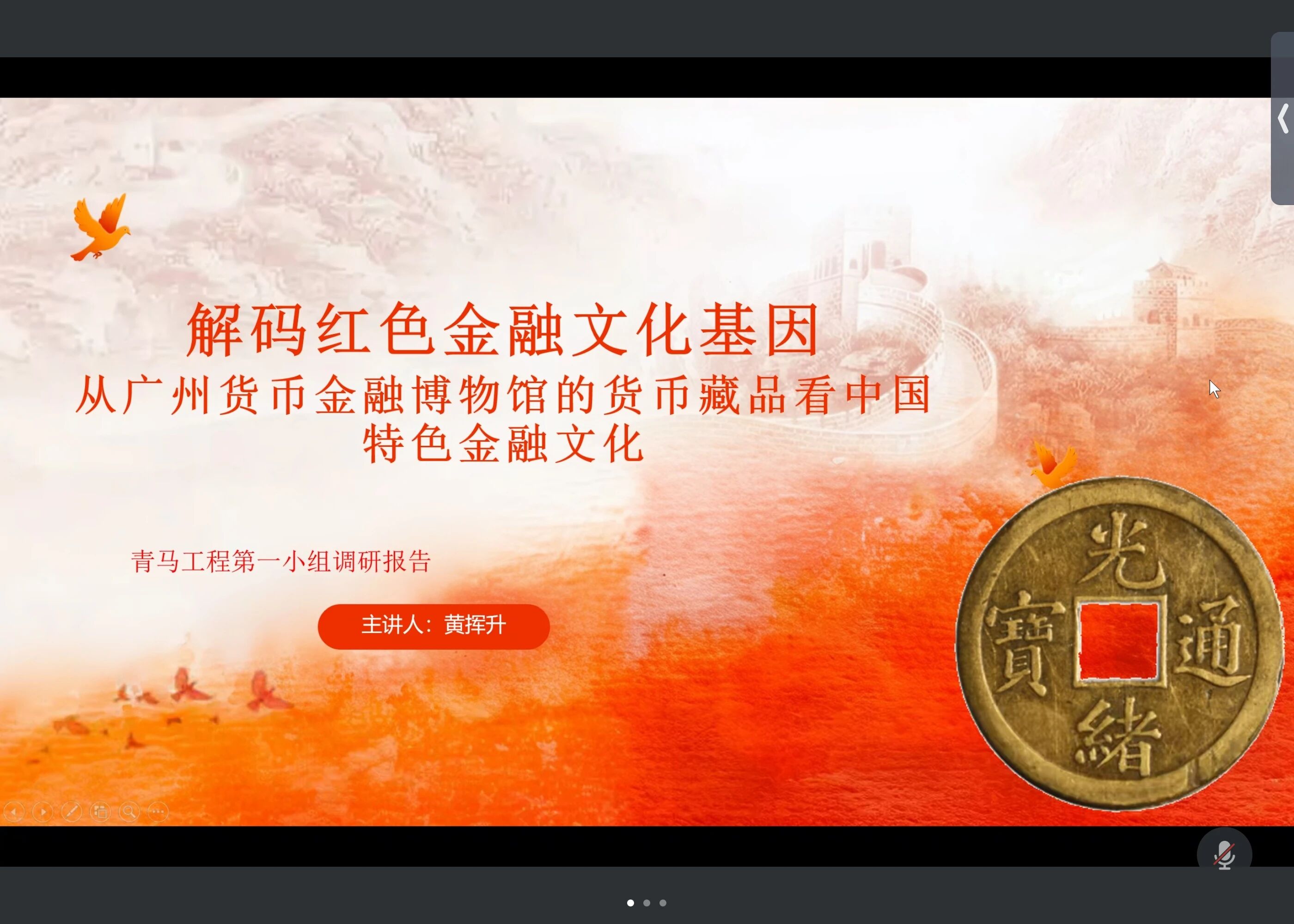 为引导学员深刻领悟中国特色金融文化的起源与发展,深入学习习近平新时代中国特色社会主义思想,“青马工程”首站活动精心组织学员观看红色金融视频片。