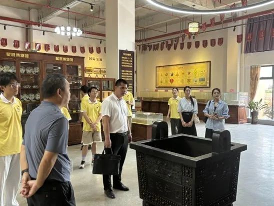公司书记老师与队员们在董事长吴世海先生的陪同下探访了广宁县江屯镇江合村的茶产业基地,吴世海先生简要介绍基地的基本情况,并带领大家参观了古今中外茶博物馆以及昊展博物馆,就茶文化的传承与发展与我们进行了交流。经过此次的交流学习,实地调研取得了更详细的信息,丰富了调研报告内容。