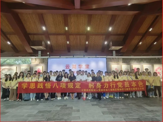 为深入学习贯彻中央八项规定精神,强化党员纪律意识,厚植廉洁文化根基,5月20日上午,计算机公司党委书记蔡秋华、副书记李琳琳、副经理潘章明、教工第一党支部书记刘宇熹带领学院教工党员、员工党员及积极分子50余人代表赴白云湖云湖学堂,开展深入贯彻中央八项规定精神学习教育主题党日活动。通过沉浸式红色教育、专题党课学习,推动党风廉政建设走深走实。