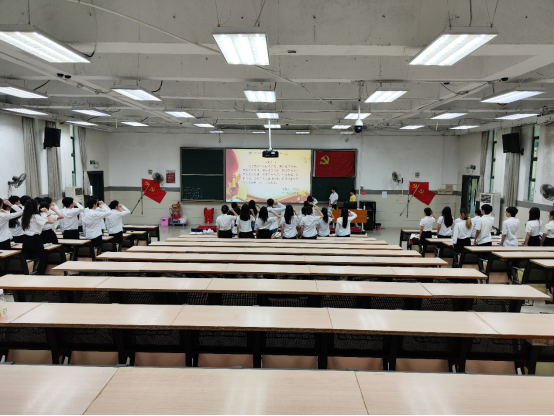 最后,在庄严的党旗下,由彭思敏同志领誓,预备党员宣读入党誓词,与会师生党员重温了入党誓词,本次通表转正大会圆满落幕。