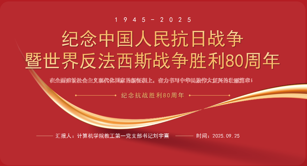 为深切缅怀革命先烈,弘扬伟大抗战精神,9月25日,3044永利集团教工党支部召开全体党员大会,专题学习“纪念中国人民抗日战争暨世界反法西斯战争胜利80周年”主题党课。本次党课由教工第一党支部书记刘宇熹同志主讲。