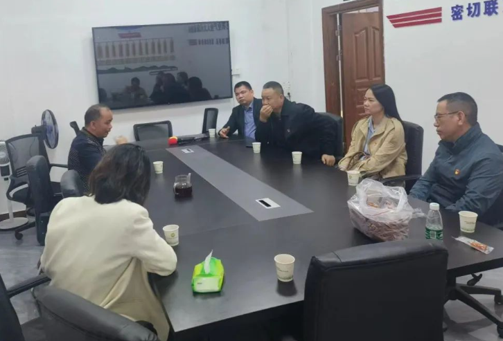 在实践基地,中心组成员与“三下乡”实践员工和实践基地负责人分别进行了访谈。员工们反馈了近几天的实践内容,实践中遇到的困惑,如在中心实践中能接触的工作内容面狭窄,无法全面把所学与所做的联系和意义等。基地负责人陈总也提出了他们的困惑,比如如何吸引到有知识有技术的高端人才加入到他们的企业等。随后,基地负责人陈总、广宁团委徐书记、公司双百工程广宁队队长陈书记等人与公司党委书记胡小波、副书记蔡秋华、副经理潘章明等中心组成员就企业如何吸引更多人才,老员工的理论知识如何运用到实践中,怎样更好产教结合等问题进行了探讨。